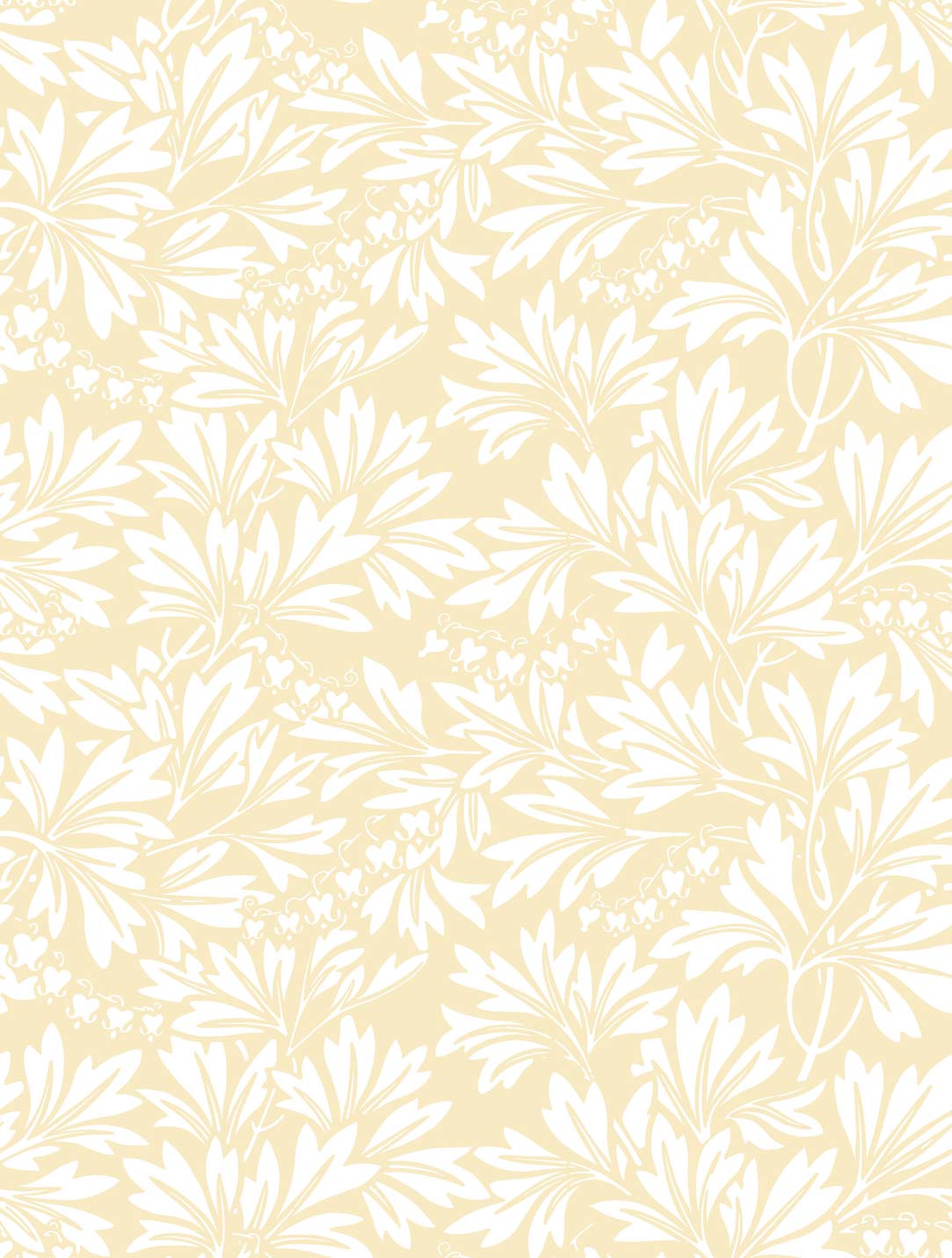 Обои Dialytra с вязью узора из стилизованных листьев и трогательных колокольчиков белого цвета на мягком желтом фоне. Большой ассортимент английских обоев в салонах Москвы.