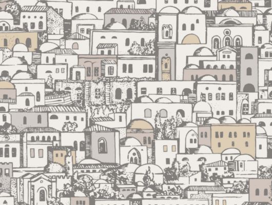 Обои в спальню Mediterranea с рисунком в виде средиземноморского города