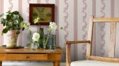 Стебли цветов и вертикальные полосы популярны на протяжении поколений, ещё со времён Густава III. Эти обои из Дроттнингхольмского придворного театра, основанного в 1766, украшены ритмичным узором в виде чередующихся полос и вьющихся растений. Чистый по стилю дизайн обладает исключительной способностью задавать цветовой тон интерьерного пространства.