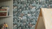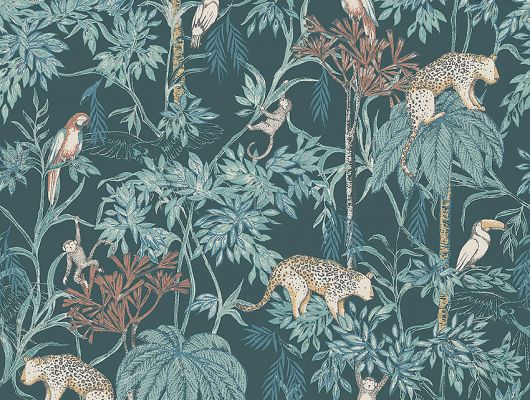 Wild Jungle с изображением на темно-зеленом фоне разноцветных диких джунглей , маленьких обезьян , попугаев , леопарда .идеально подойдут для спален детей. Большой ассортимент Шведские обои купить, салон обоев ОДизайн, в интернет-магазине, бесплатная доставка, оплата онлайн.