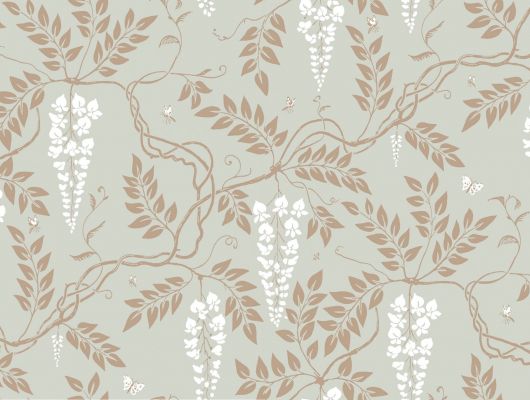 Красивые обои с цветочным рисунком «Эгертон» изображают нежные гроздья цветущей глицинии в обрамлении прекрасных листьев, изящно закрученных усиков и причудливо изогнутых тонких ветвей. Особое очарование придают композиции порхающие среди цветов насекомые – пчелы, бабочки и миниатюрные мошки. Обои «Эгертон» представлены в трех цветовых вариантах: белые глицинии с сияющими бронзовыми листьями на бледно-голубом фоне; очень бледно-розовые цветы с приглушенно-каштановыми листьями на мерцающем фоне цвета шампанского; и белый рисунок с добавлением сияющей бронзы на баклажановом фоне.