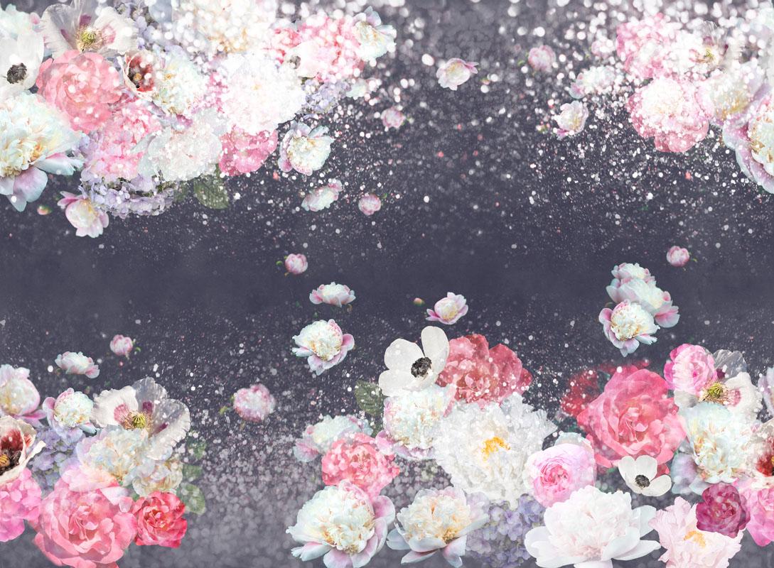 Фотообои Sparkle Floral - Dark, Mr Perswall ,коллекция Imaginarium,арт. P280110-8.Крупный цветочный рисунок обоев  с эффектом сияния.Купить в Москве.Обои в спальню.Доставка