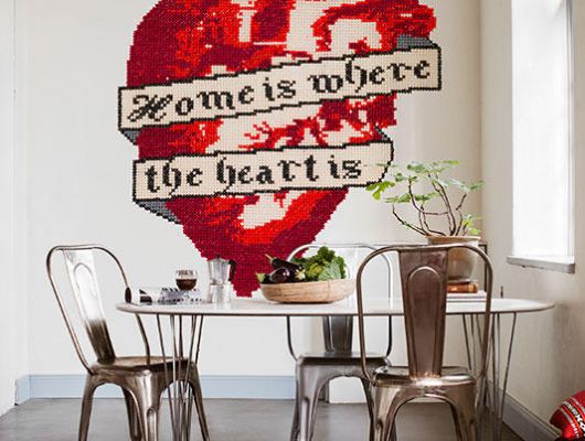 «Дом там, где сердце» - эти слова, опоясывающие изящными черными буквами символическое сердце, наполняют композицию новым, глубоким смыслом, а атмосферу в доме делают особенно теплой и трепетной.