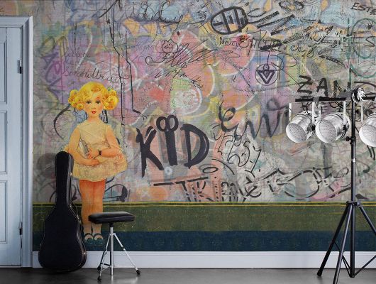 Использование элементов стрит-арта – это прекрасный способ вдохнуть новую жизнь в любой интерьер, сделать его более живым и провокационным. Эти стильные фотообои Mr Perswall – классический вариант стрит-арта практически в чистом виде, изобилующий разноцветными надписями, схематичными картинками и прочими характерными для этого направления визуальными образами. А на переднем плане – забавный реверанс от Mr Perswall: фигурка маленькой очаровательной девочки, которую совершенно невозможно заподозрить в создании этих настенных художеств, хотя кроме нее никаких других «подозреваемых» здесь не видно…