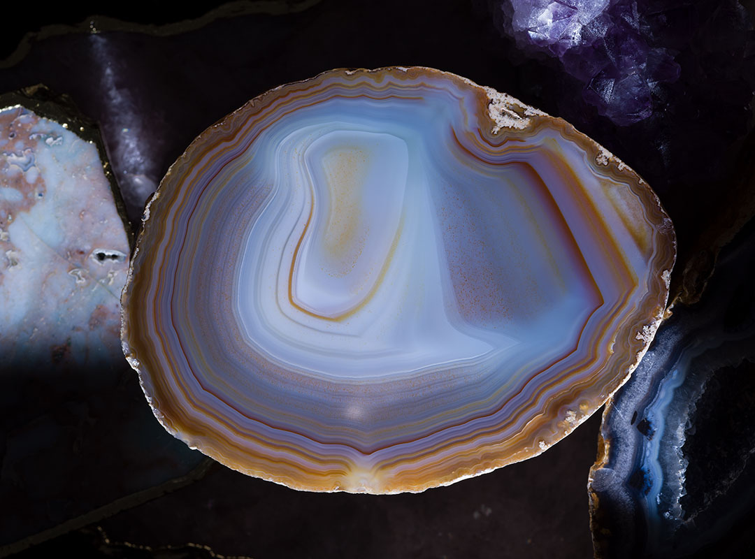 Эффектные фотообои Agat запечатлели красоту натурального камня с его лиловыми, коричневыми, кремовыми, белыми слоями. Свечение и очарование агата станут прекрасным фоном для спокойного, изысканного и гармоничного интерьера самых приватных комнат: спальни, гостиной или столовой. Размеры фотообоев: ширина 405 см, высота 300 см.