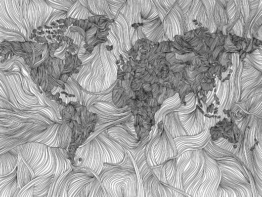 Взгляните на наш мир по-новому при помощи стильных обоев Mr Perswall «Всемирная гармония» («Global harmony»)! Знакомая со школьной скамьи карта мира представлена в неожиданном ракурсе: континенты и острова вместе с омывающим их океаном свиты из множества бесконечных линий. Они переплетаются между собой, связываясь в единое целое, и образуют на стене причудливый графический узор, который станет ярким дизайн-объектом любой комнаты и напоминанием о хрупкости и единстве всех стран и континентов на нашей планете.