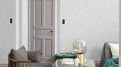 Обои для комнаты KVARTER от представляют собой актуальный геометрический рисунок в виде квадратов серых оттенков с подчеркнутой урбанистической простотой.