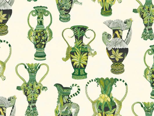 Обои из Великобритании коллекции ARDMORE от COLE & SON. Khulu Vases - грациозный дизайн для готиной, в котором представлены классические вазы, обвитые леопардами, львами, попугаями и другими африканскими животными. Приобрести  с бесплатной доставкой в О-Дизайн