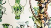 Обои из Великобритании коллекции ARDMORE от COLE & SON. Khulu Vases - грациозный дизайн для гостиной, в котором представлены классические вазы, обвитые леопардами, львами, попугаями и другими африканскими животными. Выбрать из наличия в шоу-руме