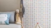 Love — это обои с разноцветным узором на белом фоне. Выполненные в стиле ретро изображения цветов, листьев и стебельков с сердечками нанесены на поверхность, напоминающую тканный материал. Это вневременный дизайн, который приковывает взгляд.