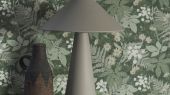 Интерьер с обоями Lindskog от Boråstapeter в природных оттенках зеленого и бежевого с изображением лесных цветов и листьев. Купить обои в салонах О-Дизайн.