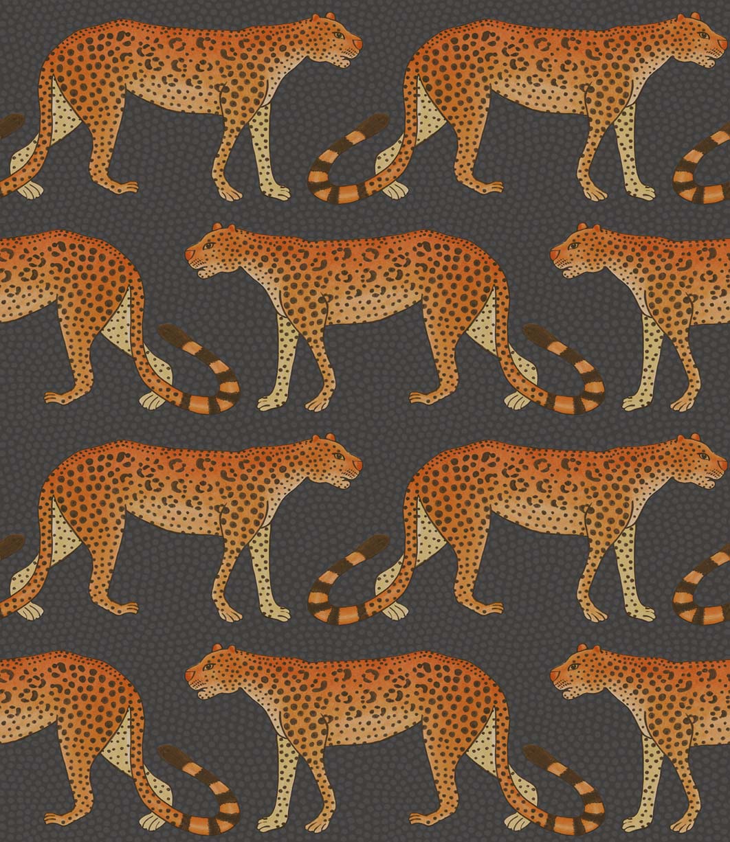 На этих обоях леопарды прогуливаются влево и вправо. Их хвосты плетут своеобразный узор и словно изгибаются в ритмах зулусских танцев и мелодий. Автором оригинального рисунка является Панч Шабалала, одна из первых и самых уважаемых художников Ardmore. “Прогулка леопардов” — простой, но эффектный дизайн, доступный в нескольких цветах. Например, мягкие оттенки серого и коричневатосерого, восхитительный чёрно-белый и насыщенный тёмный оттенок древесно-угольного с жжёным оранжевым, где леопарды почти светятся огнём.