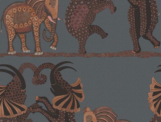 Эти красивые обои представляют нам трио слонов, танцующих вдоль африканской равнины. Мастерски выполненные изображения основаны на серии больших декоративных ваз художницы Зинхле Нене, чьи работы занимают почётное место в музее Ardmore. Здесь применяется довольно простая цветовая гамма — с целью показать изящество вручную нарисованных элементов. Угольные, песочные и светло-каменные оттенки формируют фон с лёгкими крапинками; на переднем плане используются чёрнобелые сочетания, мягкий тон шелковицы, цвет