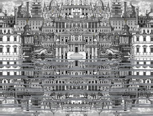 Riflesso — атмосферическое отражение римской архитектуры в стиле барокко, подмеченное сюрреалистическим взглядом Форназетти в 1955. Правая сторона является зеркальным отображением левой части, и вся сцена отражается в воде в нижней половине. Обои представлены в чёрно-белом оформлении с холодно-серебряными бликами.