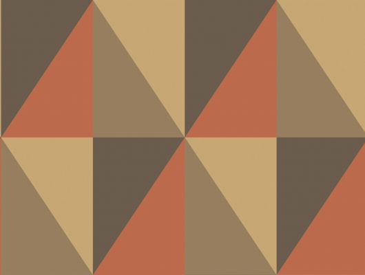Обои из Великобритании коллекции Geometric II от COLE & SON. Кирпично-красные с золотом широкоформатные, взаимосвязанные треугольники Apex Grand для современного интерьера. Купить обои в интернет-магазине, большой ассортимент, бесплатная доставка.