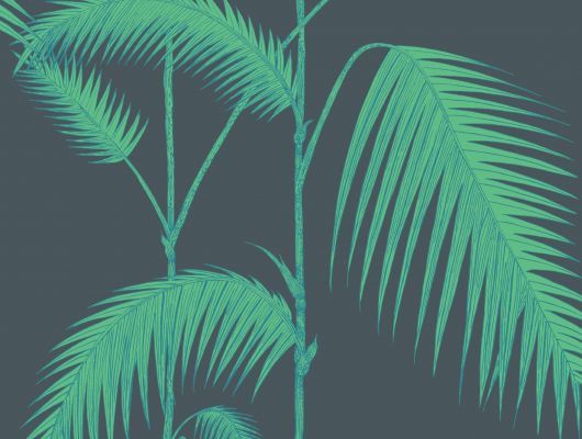 Обои Palm Leaves от Cole & Son арт. 112/2007. Простой, но яркий принт пальмовых листьев, в сочетании сине - зеленых оттенков. Графичное исполнение и ритмичный повтор рисунка создают динамичный интерьер. Салон обоев, магазин обоев, купить обои Москва.