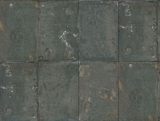 Обои арт. 92/2009. Металлические плитки в серебристом цвете, с зеркальной поверхностью и проступающей на ней коррозии. Обои в гостиную, стильные обои, флизелиновые обои
