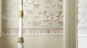 Удивительные бабочки и забавные стрекозы, кажется, через мгновение сорвутся с этих волшебных обоев Cole & Son, и будут беспечно порхать под потолком вашей комнаты, настолько естественно они выглядят. Примечательно, что некоторые насекомые изображены в крупном масштабе, а некоторые - в мелком: такой прием создает иллюзию перспективы и зрительно добавляет комнате глубины. В комнате, украшенной этими обоями, так легко унестись на крыльях самой несбыточной мечты! А вам остается лишь выбрать подходящий цветовой вариант обоев Butterflies & Dragonflies (“Бабочки и стрекозы”): с восхитительно розовыми бабочками на лазурно-голубом фоне; с бабочками и стрекозами персикового цвета, оттененного золотым металликом, на голубовато-пепельном фоне; в бронзово-дымчатых тонах; с изумрудно-бронзовым рисунком на фоне цвета белого мела; с персиково-бронзовыми насекомыми на кремовом фоне; а также с рисунком оттенков старого золота и изумруда на контрастном угольно-черном фоне.