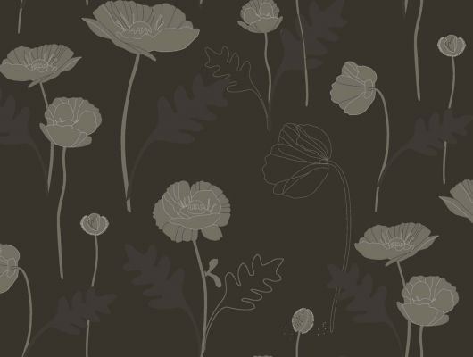 Нежный цветочный рисунок этих стильных обоев сразу привлекает внимание, и добавляет в атмосферу комнаты мягкости и поэтичности. Грациозные маки обозначены лишь силуэтами, более светлыми, чем основной фон, с частично прорисованными тончайшими контурами. Такая композиция, дополненная благородными оттенками – смотрится на стенах поистине магически!