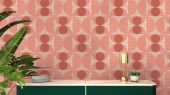 Окружности друг над другом и в наслоении на выразительных структурах. Спокойный геометрический дизайн, выполненный в крупном формате для большей эффектности, доступен в четырёх продуманных сочетаниях цветов.