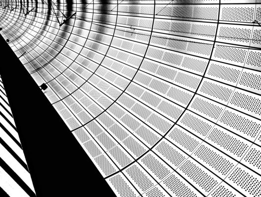 Не ограничивайте свою свободу исключительно пространством комнаты, пусть ваша гостиная, спальня или холл продолжается длинным и широким туннелем на фотообоях Mr.Perswall "Графические линии". Черно-белый туннель смотрится очень эффектно благодаря продольным и поперечным тонким полосам и облицовке ажурными пластинами из блестящего металла. В нем есть что-то фантастическое, словно он является красивым переходом в будущее или прошлое, а может, в какой-то параллельный мир - но куда именно он ведет, решать только вам!