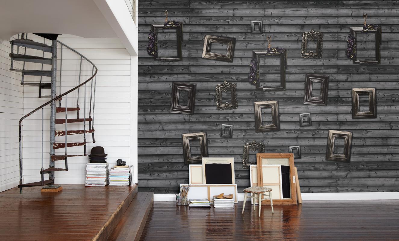 Картины в красивых рамках - классическое украшение любого интерьера, которое никогда не потеряет своей актуальности. Можно самому собрать свою коллекцию, а можно оформить комнату фотообоями Mr.Perswall с изображением галереи - современной интерпретацией этого стилистического приема. Необычным фоном, который подчеркивает изящество расположенных на нем работ, является стена из темных досок с благородной фактурой. А собственно художественную галерею Mr.Perswall предлагает вам выбрать из двух вариантов: в первом из них деревянная стена оригинально украшена пустыми патинированными рамками без картин. Во втором варианте в рамках присутствуют картины, в качестве которых выступают небольшие образцы обоев из коллекции Expressions.