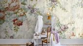 Флизелиновые фотопанно из Швеции коллекция NOSTALGIC от Mr.PERSWALL под названием BLOSSOM. Панно с цветочной вышивкой на бежевой ткани. Фотообои для гостиной, панно для спальни. Большой ассортимент, купить обои в салоне Одизайн