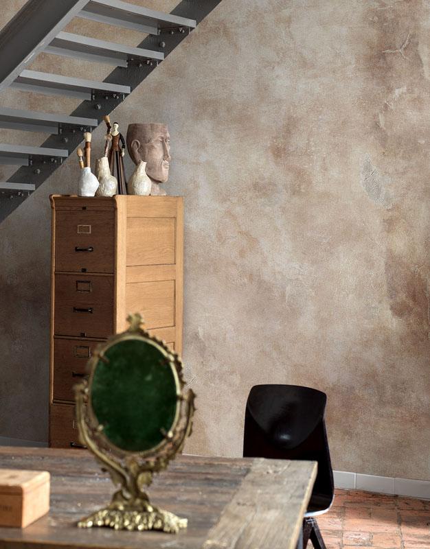 Фотообои “Sahara”, похожие на слой патины, предназначены для тех, кто ищет потрясающую альтернативу бетону и штукатурке. Рисунок вдохновлён африканской практикой покрытия стен глиной. Бежевая палитра гармонично сочетается с белыми, чёрными, пастельными тонами и с серым текстилем.