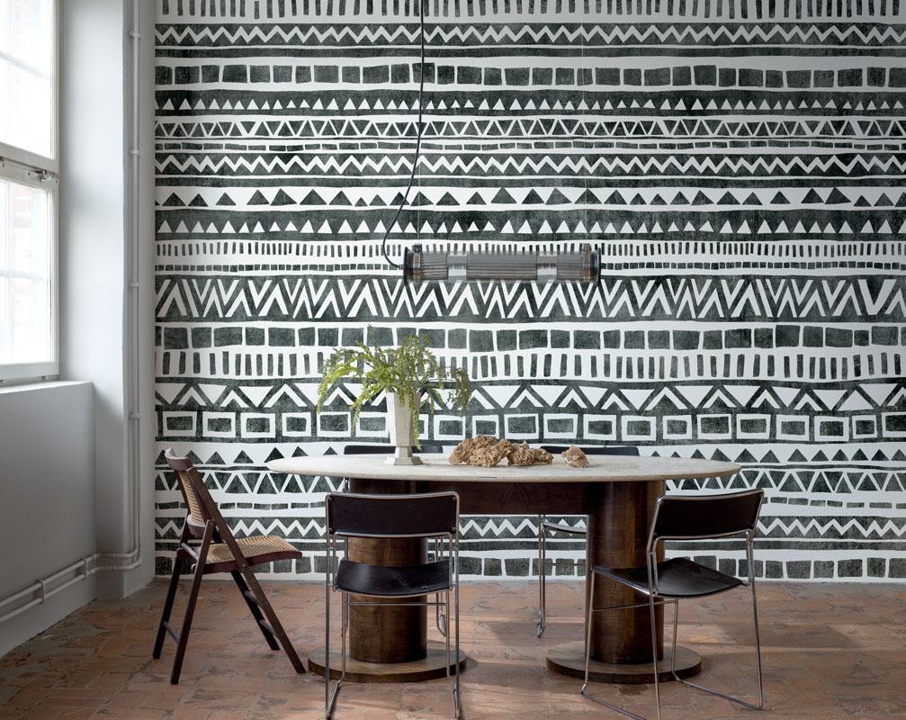 Эти классические обои с геометрическим узором созданы под влиянием африканских настенных росписей. Очаровательная ручная раскраска “Tribe Stripes” привносит приятный штрих визуального динамизма, который отлично вписывается в современный скандинавский интерьер.