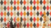 Обои из Великобритании коллекции Whimsical от COLE & SON. Ромбы разных цветов, придадут интерьеру колорит средиземноморья и театральность неунывающего героя Punchinello. Обои для зала. Купить, онлайн оплата, интернет-магазин.