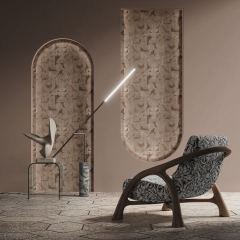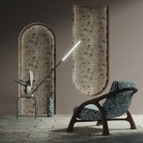 В каталоге представлены эффектные геометрические дизайны, вдохновленные эстетикой второй половины XX века, когда научно-фантастическая литература, кинематограф и иллюстрации достигли расцвета. Художники коллекции стремились передать детали, характерные для стиля 60–70-х годов, сформированного под впечатлением первого полета человека в космос. Здесь отражены знаковые символы из культовых романов той эпохи, схематичные изображения планет и спутников, межзвёздные дороги и 3D-объекты, парящие в невесомости.
