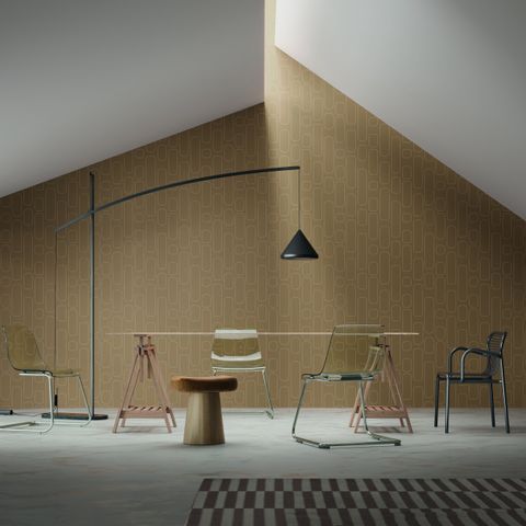 Ретрофутуризм воплощён в строгих зигзагообразных линиях, классические округлые формы mid-century и причудливые сферические элементы сочетаются в лаконичных паттернах, напоминающих космические корабли, далёкие галактики и сверхсветовые полеты.